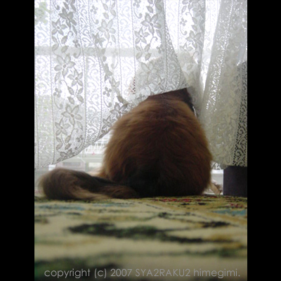 再会の喜びを分かち合ってから、一緒にお外を観察。小さな縁側から空や風や音を彼の側らで楽しむ時間は、とても心穏やかになるものです。人やニャンコさまが通ると吠えまくるので止めるのに苦労しますが。