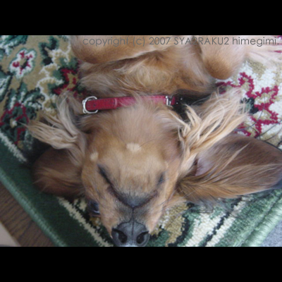 おイヌさまは遊び疲れて、床にペッタンコでした。