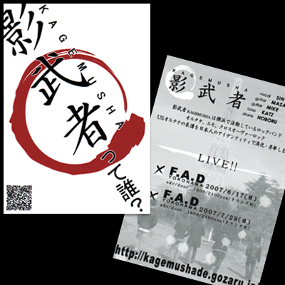 昨夜、急に影武者さまのライブが入り、中華街の外れにあるお馴染みのF.A.D yokohamaさんに足を運んできました。今回はけっこう大きいバンドの前座的に出演ということで、なんとか間に合わせたフライヤーはこんな感じ。