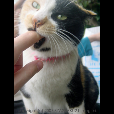 帰り道には、この前のおネコさまにまた会えた!お名前も判明。「みぃ」さまというそうです。この日も私の指を美味しそうにガブガブしてくれました。歯茎でもかゆいのかしら?
