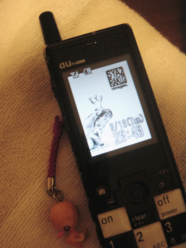 自分の携帯も手描きカエルさんを待受にしてみました。