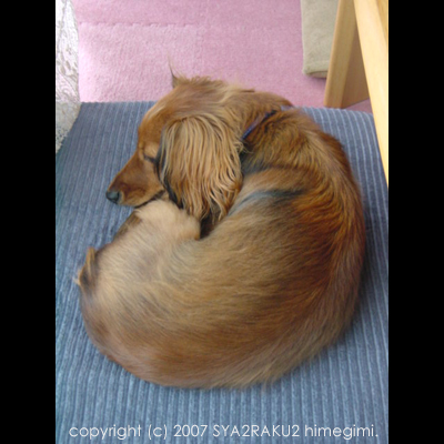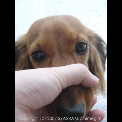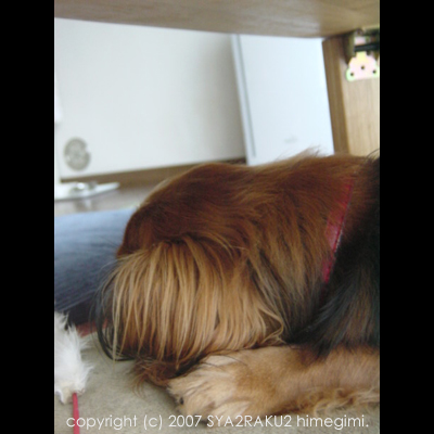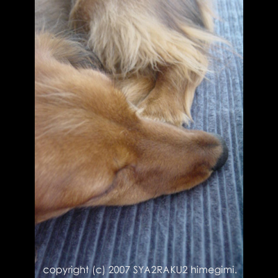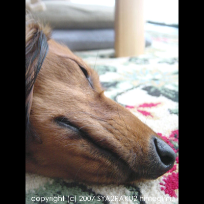 しかし、ふと顔を覗くと・・・おイヌさま、お鼻が曲がっていますよ~。いつもこのお鼻の柔らかさに驚きます。床に押し付けてふむふむと匂いを嗅いでいる時など、左右上下に自由に曲がり、見ていて「クスッ」と笑ってしまいます。