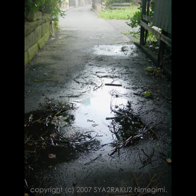 お外に出ると色々な物が道の上にばら撒かれていて、近所の川の水位はけっこう上の方まで上がっていました。まだ風は強くて、髪が一瞬でぐしゃぐしゃ。それでも青空がチラホラ雲の隙間から見えて、ホッと一安心です。