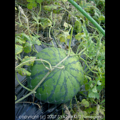 セミさんの声もどんどん増えてきた我が家のお庭の片隅に、大家さんが育てているスイカさんを発見。最初は全然気づかなかったのですが、相方に言われて本日確認してきました。