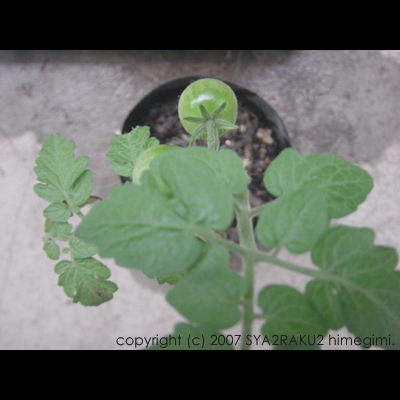 お庭のトマトさんの方は、陽射しが少ないせいか、あまり大きくなった印象はありません。実が赤くなる気配もまだなし。もう少しお預けのようです。