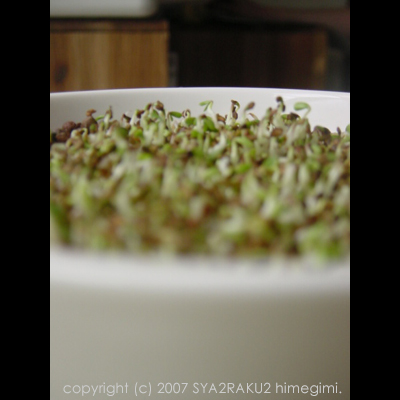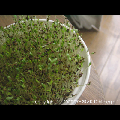 もう少しで食べ頃かしら?まだ頭に種の殻を被っている子達が多いですが、背丈は3センチ程まで成長しました。あと数日でどんな伸びっぷりを見せてもらえるのか楽しみです。
